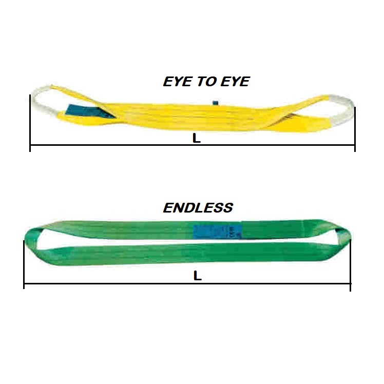 Có hai đầu được may thành hình mắt (loop) để móc vào móc cẩu hoặc các thiết bị nâng hạ.
