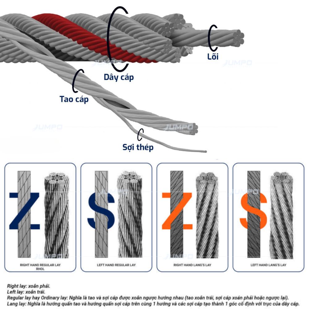 - Chất liệu: Lựa chọn loại cáp thép phù hợp với loại hàng hóa và điều kiện làm việc.