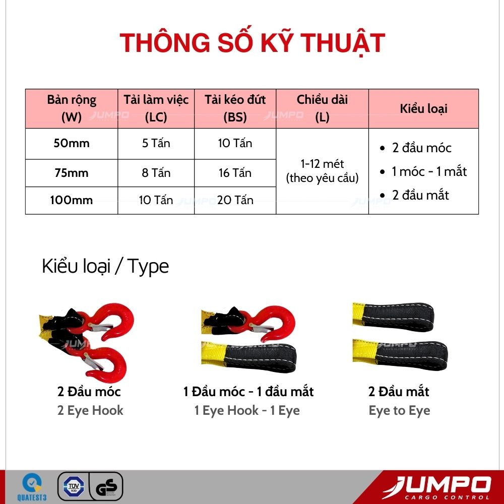 - Jumpo Cargo là công ty chuyên thiết kế, sản xuất và cung cấp sỉ và lẻ các loại Dây cáp kéo hàng kéo cứu hộ ô tô với nhiều tùy chọn theo nhu cầu sử dụng khác nhau: