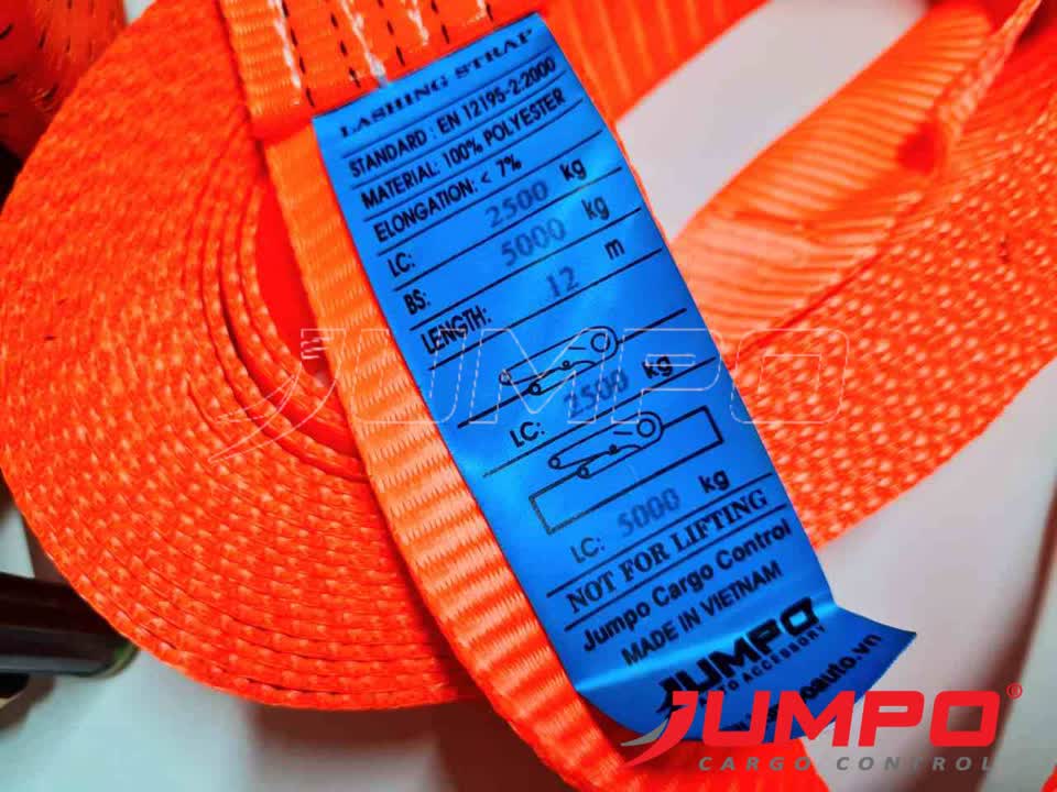 Đây là loại dây chằng sử dụng vật liệu sợi polyester (PES) với bản rộng từ 25mm đến 75mm, tích hợp tăng đơ (ratchet) và móc nối theo tiêu chuẩn. Khi đạt chuẩn EN 12195-2, dây phải:
