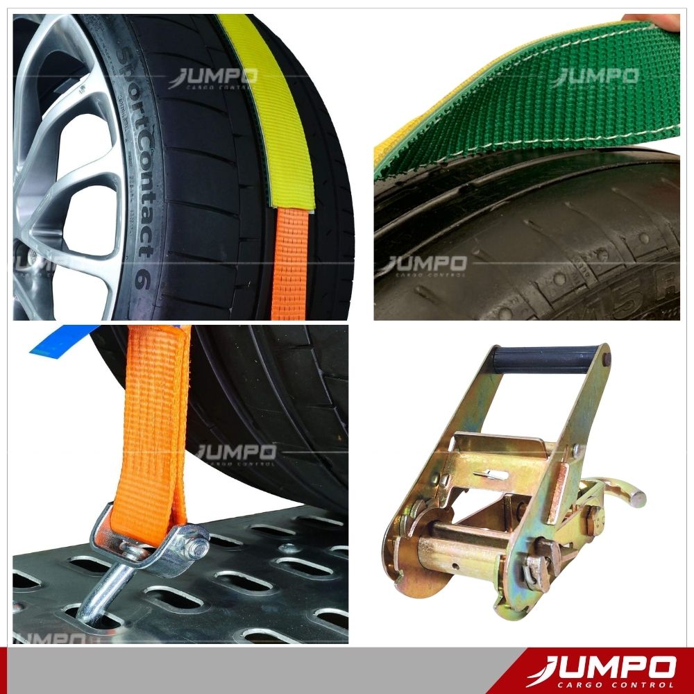 - Wheel tie-down straps, also known as wheel straps or wheel chocks, are specialized straps designed to secure vehicles or equipment onto trailers or flatbeds. They typically consist of a durable strap, a ratchet mechanism for tightening, and secure end fittings that attach to the vehicle or anchor points.