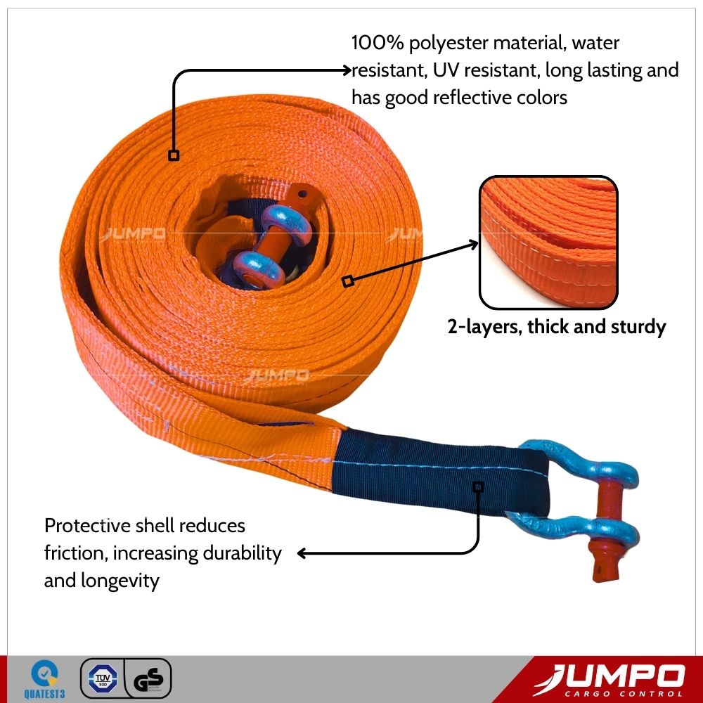 Jumpo Cargo offers custom manufacturing of tow straps to meet your specific requirements. Choose from a variety of hook styles, lengths, colors, logos, and labels to match your preferences and branding needs.