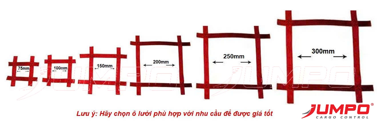 Là các sợi dây bẹ polyester dệt chéo nhau thành các ô vuông đều nhau (kích thước ô thường 100–150mm).