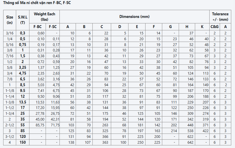- Ma Ní Chốt Ren Vặn Omega F-BC 2010 KBC4 – Hệ số an toàn 4:1