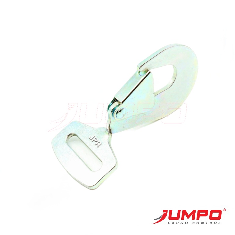 Kiểu móc khóa cài cong sâu, dễ dàng móc vào các điểm neo như khung xe, ray sàn container, móc D-ring, và được khóa lại rất an toàn…