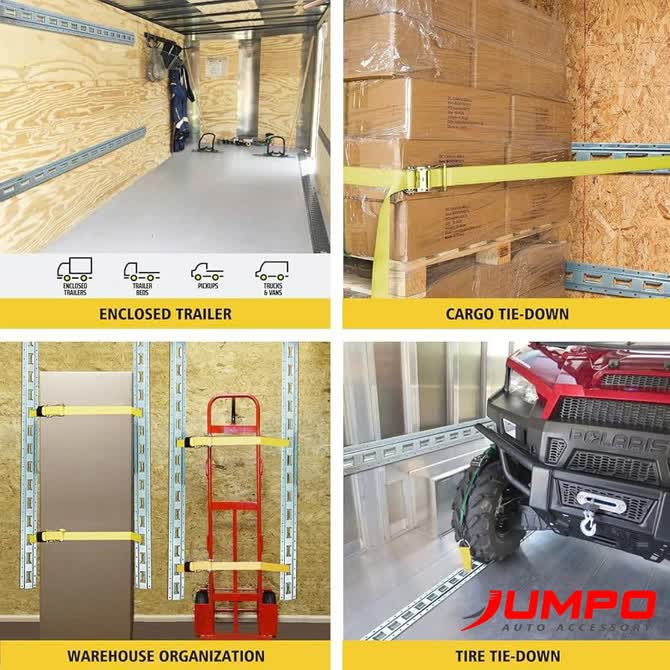 Jumpo Cargo cung cấp các sản phẩm ray E-Track với chất lượng vượt trội, đáp ứng tiêu chuẩn quốc tế. Sản phẩm được sản xuất từ vật liệu thép chịu lực cao, đảm bảo độ bền và khả năng chịu tải lớn, phù hợp cho việc cố định hàng hóa trong xe tải, container và kho bãi.