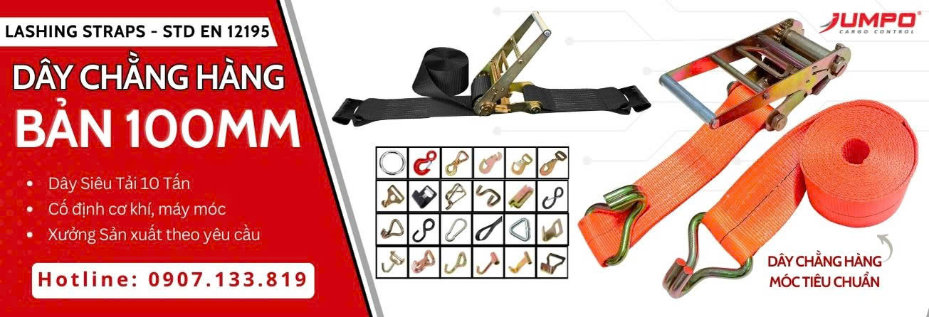 Với bản rộng lớn, dây có khả năng phân bổ lực siết đều trên bề mặt hàng, tránh làm hỏng hoặc biến dạng kiện hàng. Dây bản 100mm thường được sản xuất theo tiêu chuẩn an toàn EN12195-2 (Châu Âu) và có tải trọng làm việc từ 8 – 10 tấn, phù hợp cho các ứng dụng chằng buộc máy móc công nghiệp, hàng siêu trường siêu trọng, container, pallet thép và thiết bị xây dựng cỡ lớn.