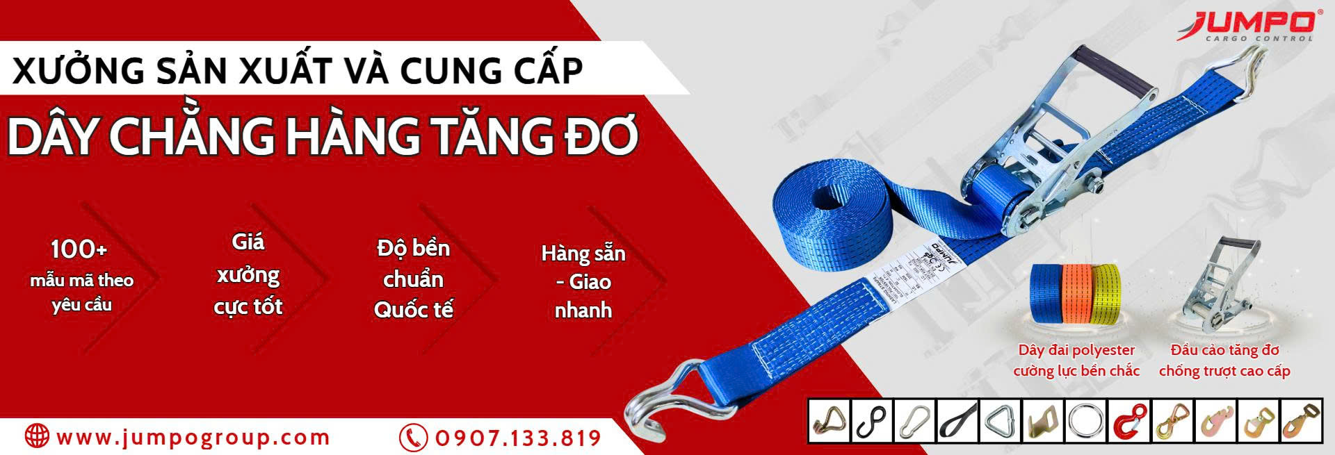 Dây Chằng Hàng Tăng Đơ Jumpo: 100+ Mẫu với bản dây từ 25mm-100mm, tải 1 Tấn đến 10 Tấn, đủ loại móc và chiều dài khác nhau - Xưởng sản xuất tại TP Hồ Chí Minh, chất lượng theo chuẩn Châu Âu- Giao nhanh toàn quốc.
