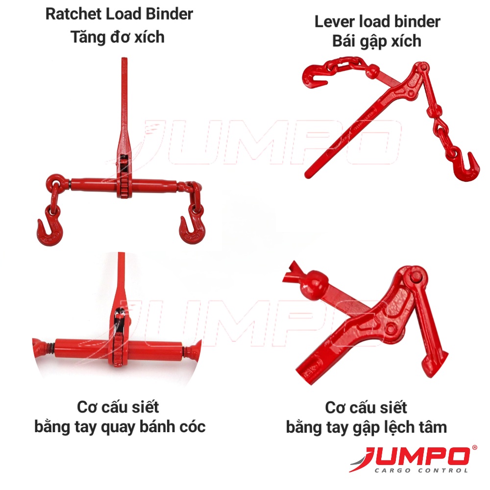 Tăng đơ xích chằng hàng (Chain Binder / Load Binder) là thiết bị dùng để căng – siết – khóa – cố định hàng hóa bằng dây xích thép, thường dùng cho các loại hàng nặng: thép, máy móc cơ khí, pallet nặng, thiết bị công trình,…