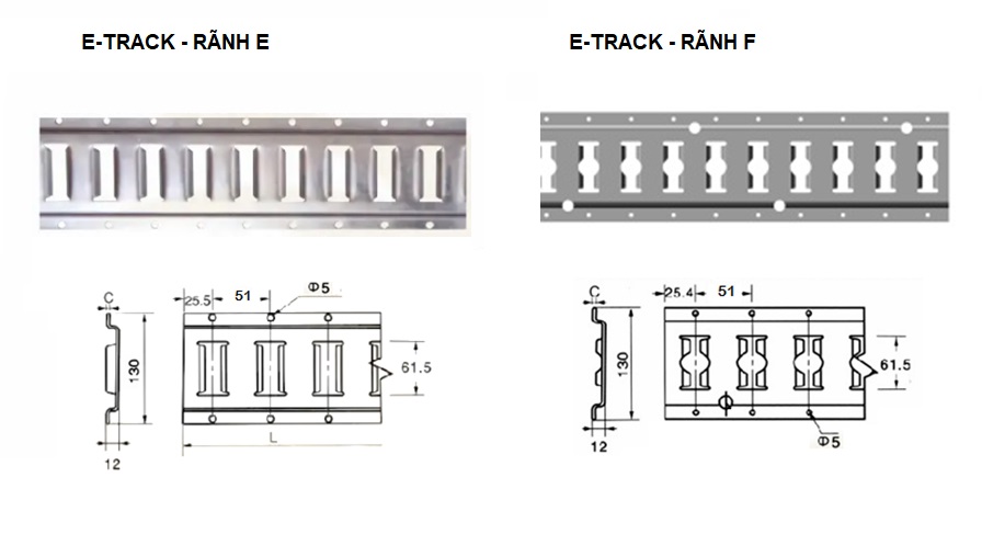📌 Lưu ý: Nếu bạn đã có dây chằng hàng hoặc phụ kiện gắn E-track thì nên chọn ray rãnh E để đảm bảo tương thích 100%.