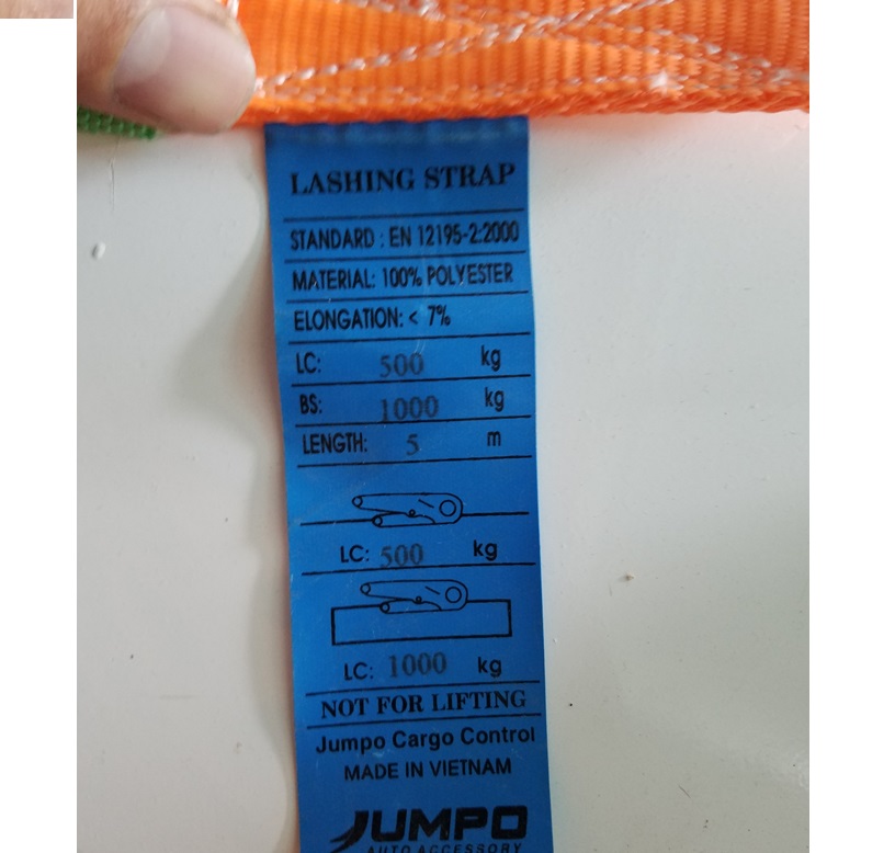 - Tiêu chuẩn EN12195-2:2000: Đây là tiêu chuẩn châu Âu quy định về yêu cầu an toàn đối với dây chằng hàng. Tiêu chuẩn này xác định các thông số kỹ thuật như khả năng chịu lực, độ bền, và phương pháp thử nghiệm để đảm bảo sản phẩm đáp ứng yêu cầu an toàn trong vận chuyển hàng hóa.