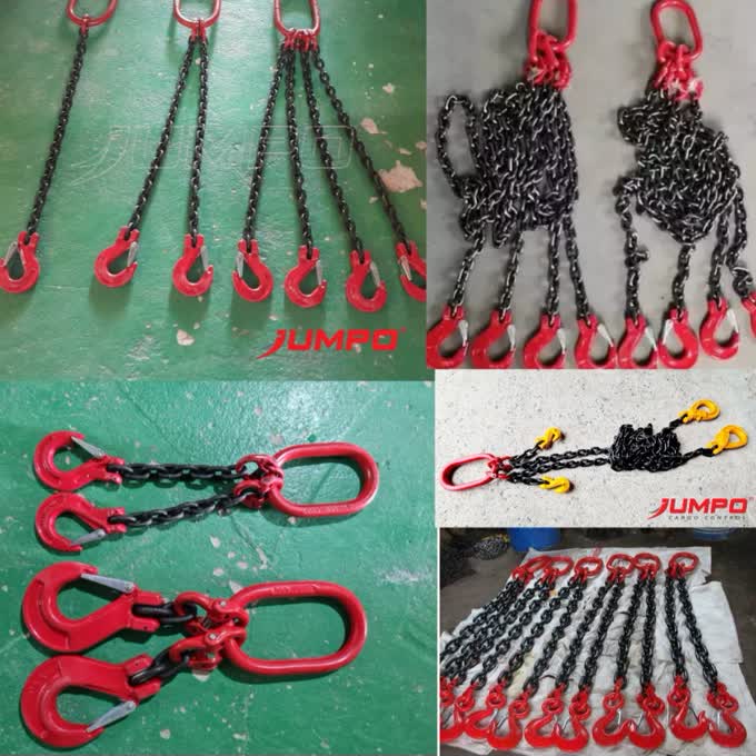 Đây là loại sling xích phổ biến nhất trong công nghiệp, dùng để nâng hạ hàng hóa nặng như: khuôn máy, thép tấm, container, thiết bị cơ khí...